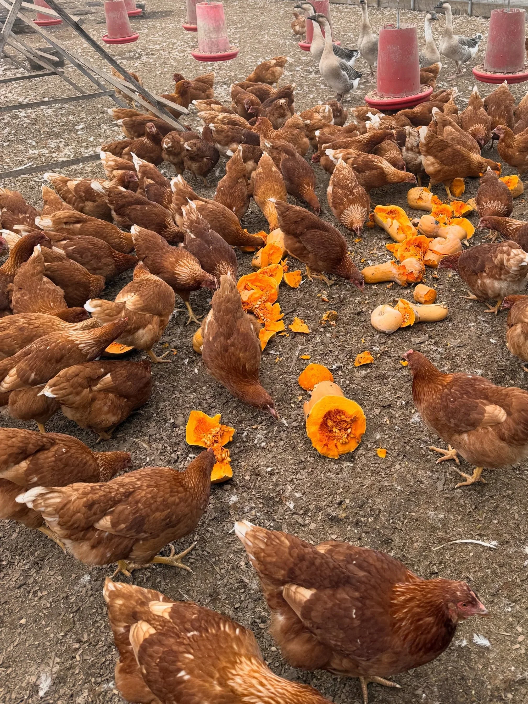 We raise a breed of layer called Novogen Brown out of Hillside Hatchery in PA, a sister hatchery to Freedom Ranger, which supplies us with our meat birds.